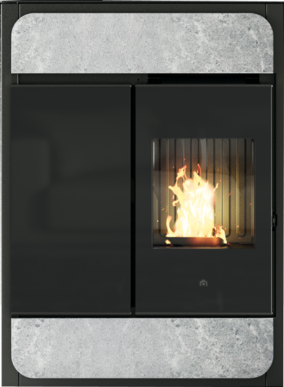 Kompaktné hermeticky uzavreté kachle na pelety EDILKAMIN BILD Air Tight C, s hĺbkou 30 cm a s elegantným skleneným čelom.
